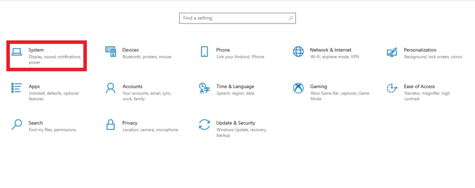 By clicking on it, you will access the settings and then click system.