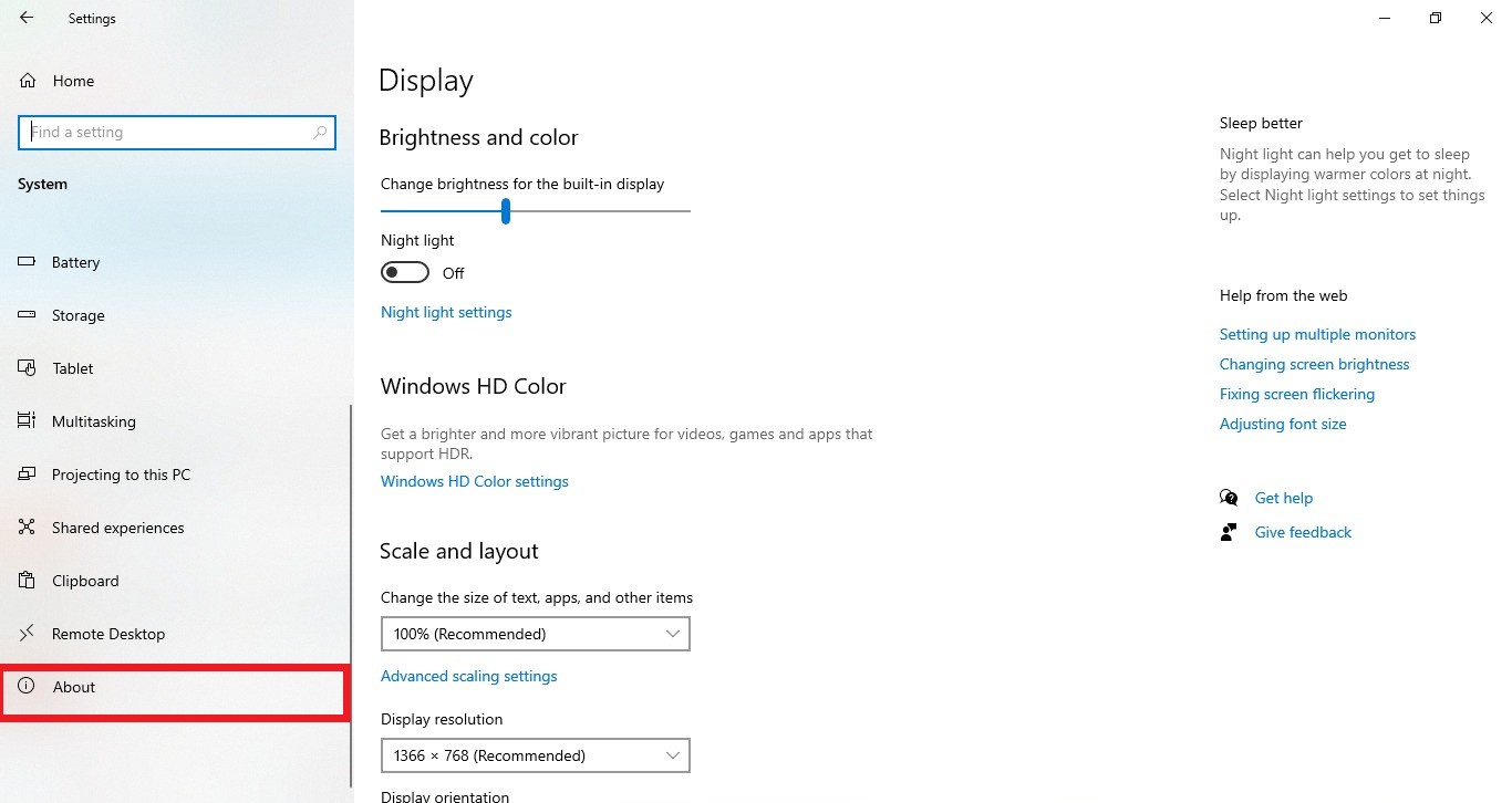 Scroll down to the bottom of the page and click about on the left side of the screen.